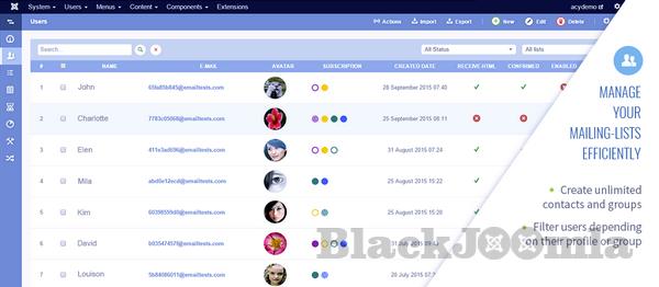 Real time send process using a queue system with throttling enabling you to overcome any server limitation! Record the User IP to stay compliant with all countries laws. Double opt-in and automatic unsubscribe link. CAN-SPAM compliant. GDPR compliant. Validation and Confirmation of the email address. Mass Subscription using filters and mass actions. Automatic synchronization with your Joomla Users.