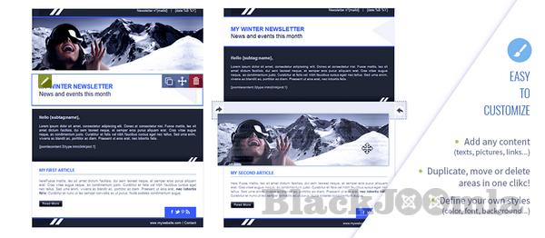 - No HTML knowledge required, enjoy the email marketing and newsletter creation with our drag and drop editor (create your template in a minute with our saved zones).