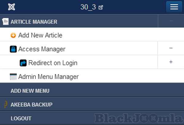 - the Joomla admin menu