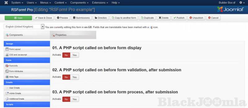 Hide your custom scripting from other back-end users. But still give access to the RSForm component.