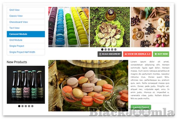 Dynamic Module: Advanced Portfolio Pro module can be displayed in Grid or Carousel-style module. Especially, you can show Grid module in Joomla content or project’s description part.