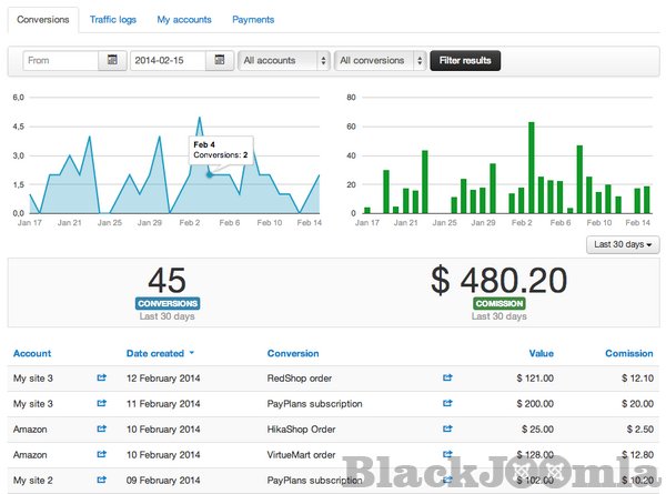 It is compatible with main e-commerce extensions so you can start tracking your affiliate sales immediately for VirtueMart, PayPlans, HikaShop, RedShop, K2Store, J2Store, OS Membership Pro, Akeeba Subs, Emerald…