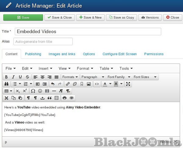 It is easy to set up, customize and use. Various options can be set for the embedded videos, depending on the video service used (i.e. width and height).