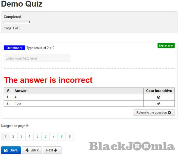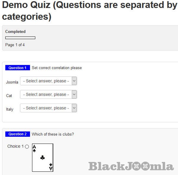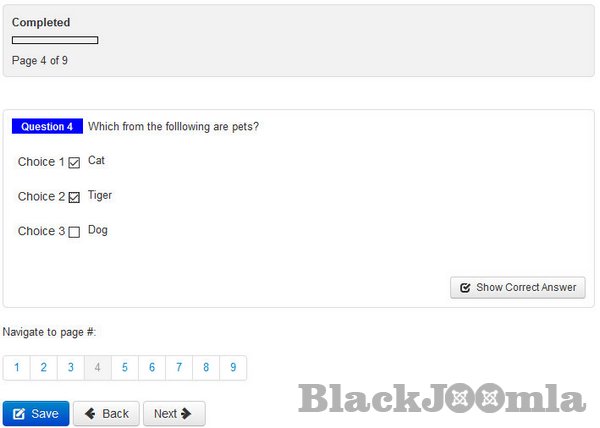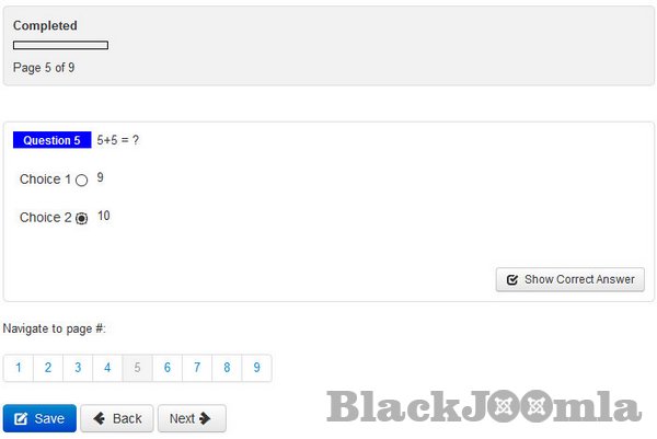 - supports AJAX making the component more fast and powerful. AJAX technology lets user to pass test without page reloads - component will update all the page stuff itself