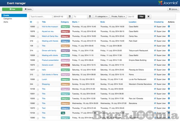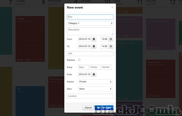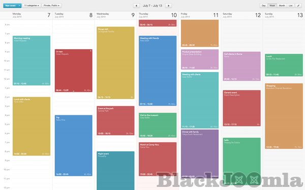 Create and share events with your users using beautiful calendar views in Joomla. Either to plan your own private schedule, or to share public calendar events that your users can see in your site, Calendar Planner is the best Event Management tool for Joomla! and the most intuitive and easy to use, thanks to its brilliant, JavaScript and Bootstrap powered User Interface, and its AJAX connection to the server for non-intrusive, smooth navigation for your users.