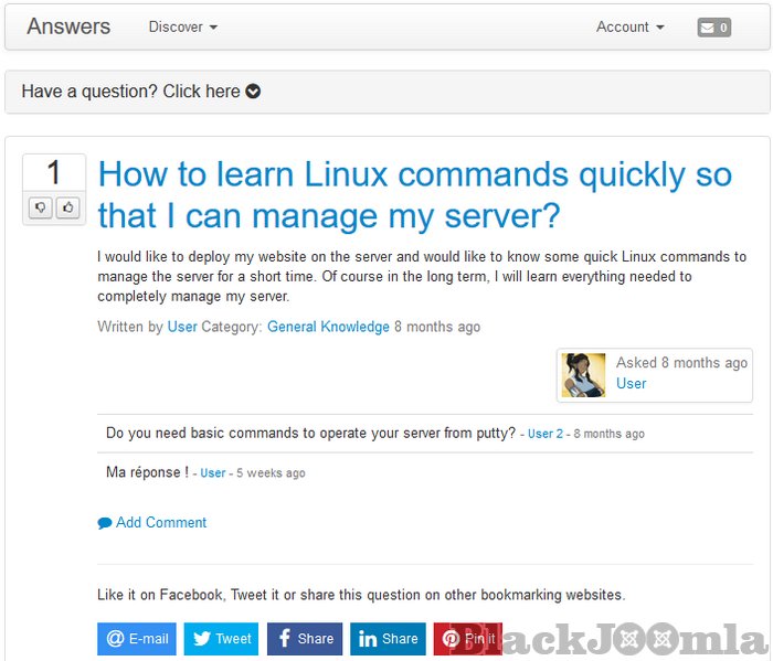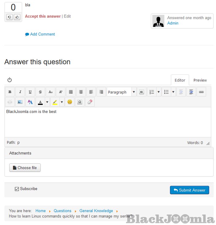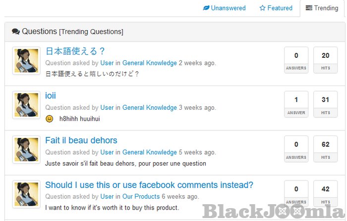 Permission System: You get full control of what you want to allow the users to do. Fully integrated with Joomla permission settings, you can control which user groups has permission to answer, ask, edit, rate, subscribe, manage, vote etc. All at one place.
