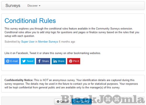 ♦ Ability to take surveys with or without your Joomla template (full page mode).
