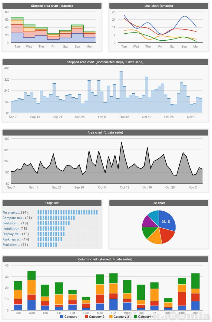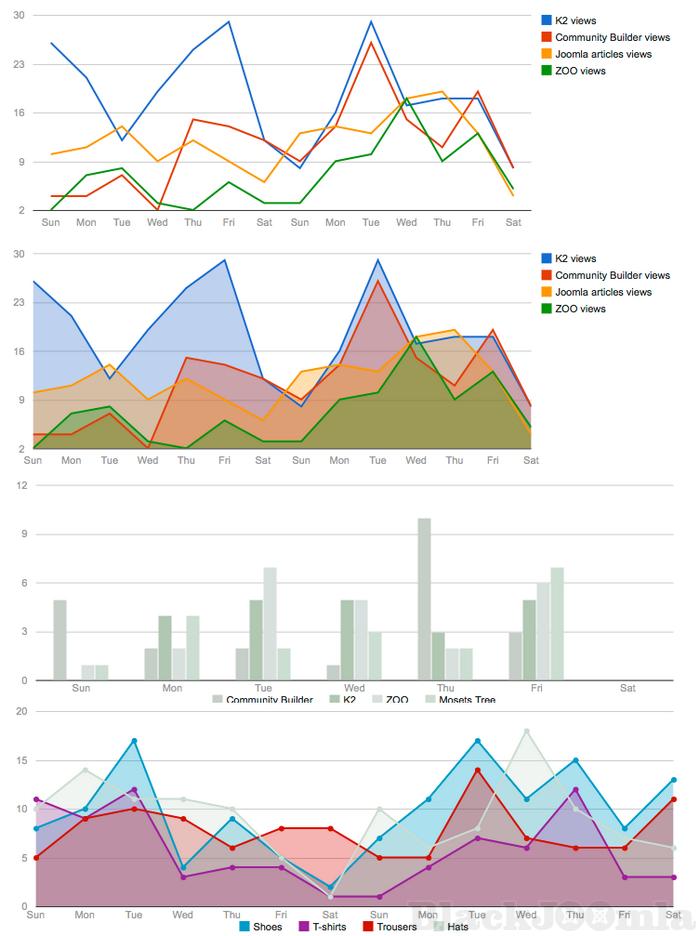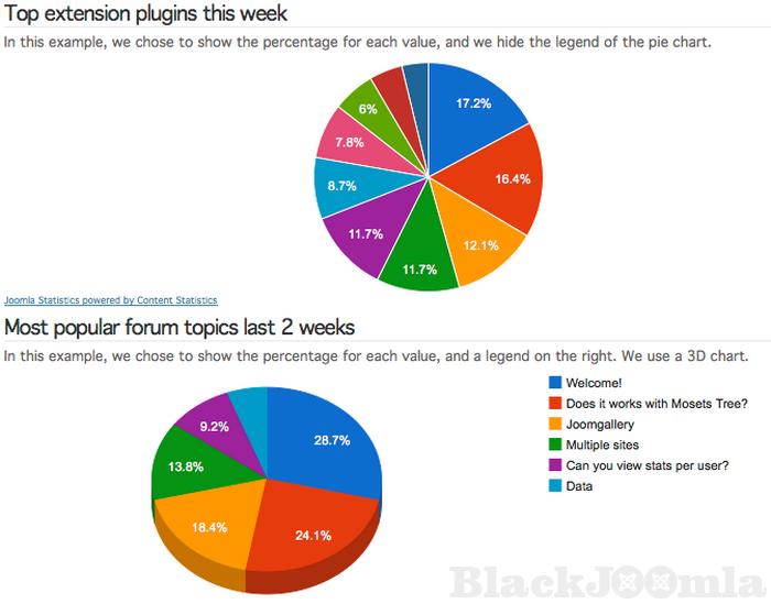 Show popularity rankings and content evolution reports using the ultra configurable modules served with it. Know how many people sees your Joomla articles, K2 items, Community Builder profiles, JomSocial pages, track DOCman document downloads, VirtueMart item sales along the week, months and years. The definitive Graphic Statistics and Rankings system for Joomla offers you all you need to complete your site with beautiful Google Charts reports of your stats. Its high versatile plugin system makes this extension integrate perfectly with every area of your site, without needing to worry about your component updates