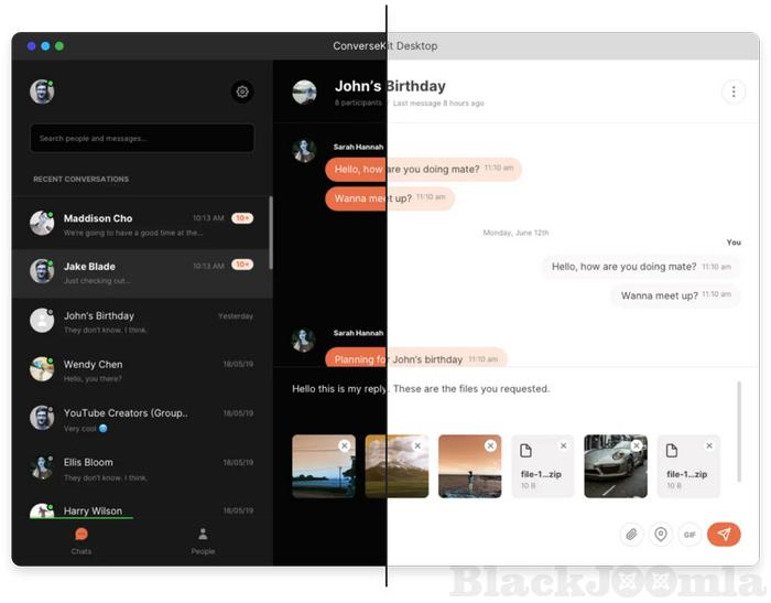 Quickly share images from Giphy with the built-in Giphy support.
