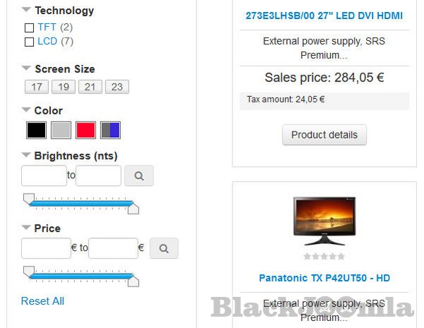 Detection and display of the filters relative to the displayed products.