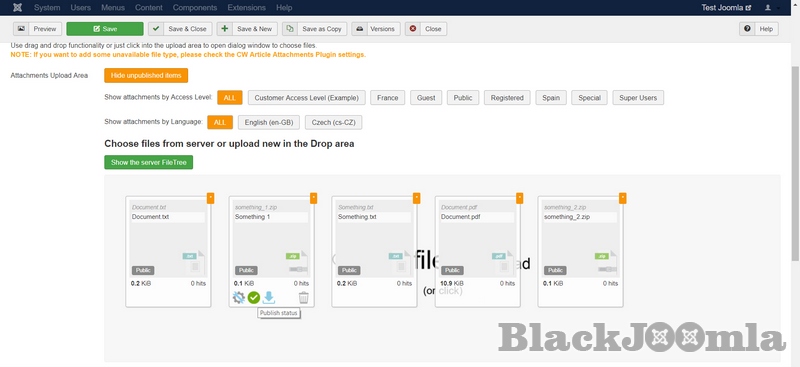 - Possibility of filtering attachments in article edit form by their publish/unpublish status