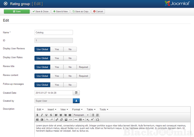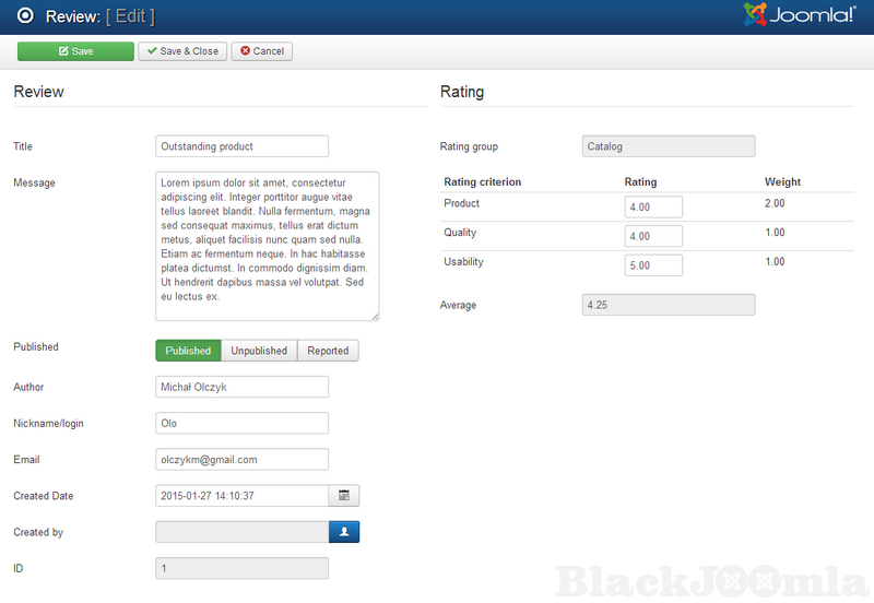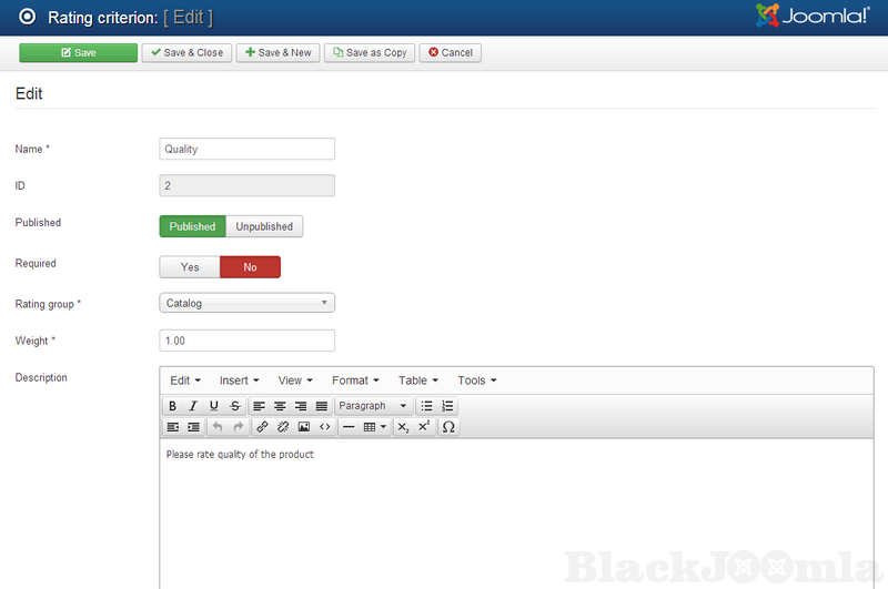 The weight will be used later to calculate the overall rating. So, the website’s users will be able to write reviews, rate content (including DJ-Classifieds ads, DJ-Catalog listings, and J2Store products).