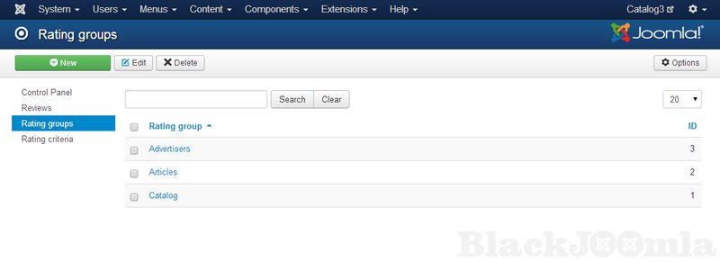 DJ Reviews comes with a component, module, and plugins. Configuration options require creating a group of rating criteria and then assigning to each group the criteria according to the type of content.