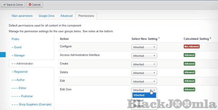- Define ACL on file action (edit file, edit own files, delete files...) per joomla user groups