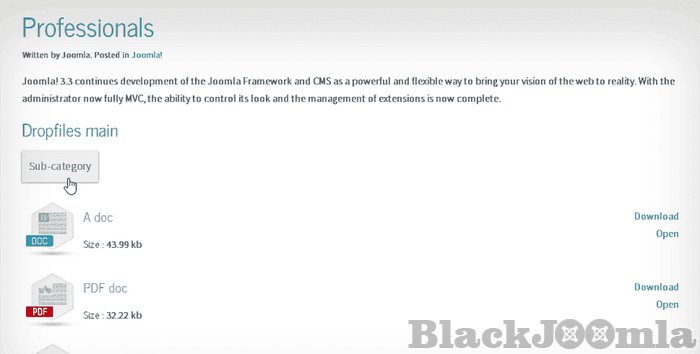 - Native Joomla ACL on files categories in one click