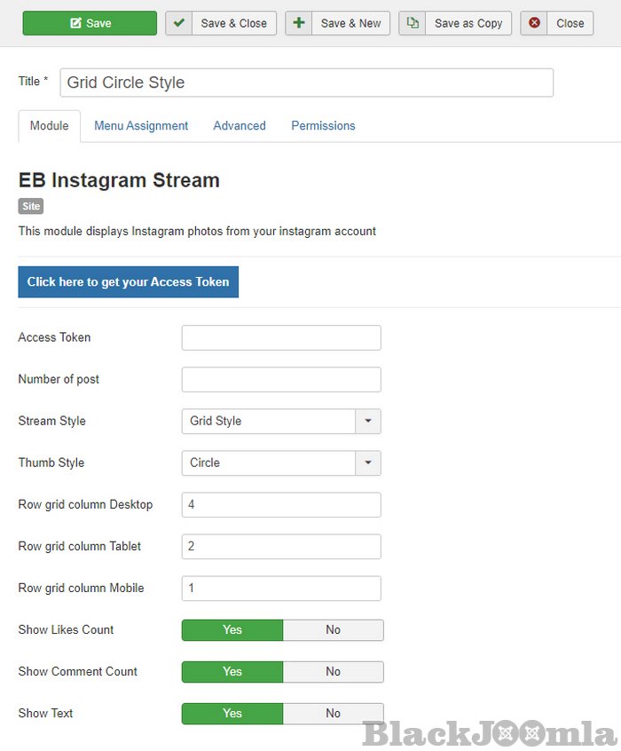 In-built Instagram GRID Gallery with an option to display Square OR Circle photos