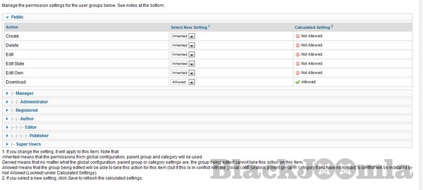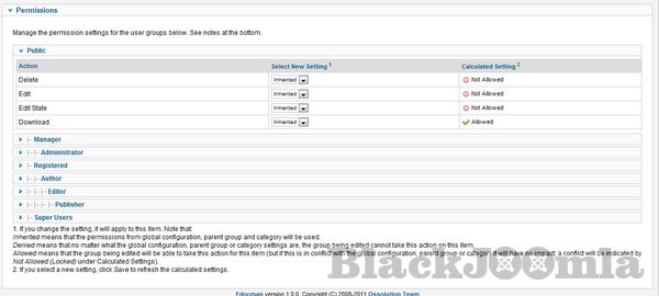 Permission of the category will be inherited from the component permission setting.