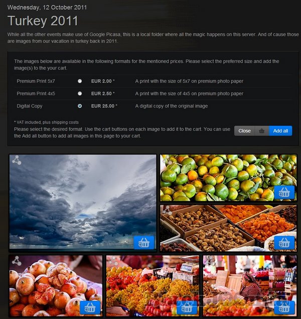 Event Gallery adds a full cart & checkout process to the gallery.