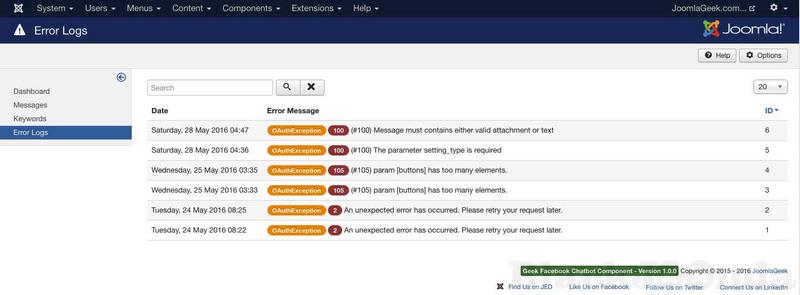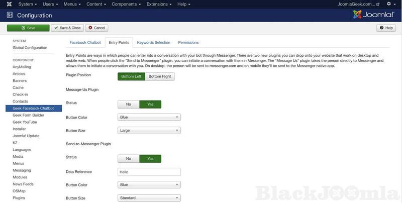 Geek Facebook Chatbot is a Joomla component that dipped its foot into the world of artificial intelligence by offering a customer support and online service. The component enables you to handle unlimited number of customer, 24 hours a day, 7 days a week processing data and assisting customers.The component automatically acts on its own by delivering the most relevant answers to the customers. The component is really designed to have conversations with real human being.