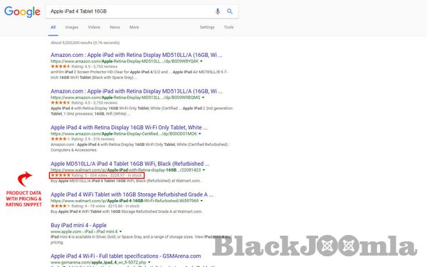 Provide detailed product information in rich Search results such as product reviews, stars rating, pricing and availability.