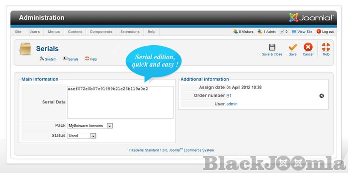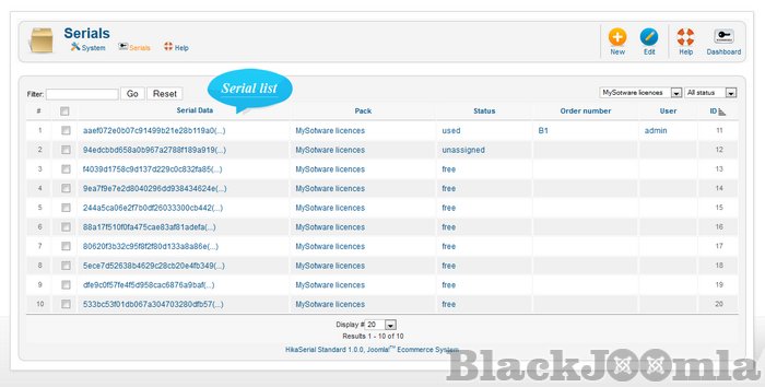 HikaSerial is a Joomla! component which work with the e-commerce solution HikaShop.