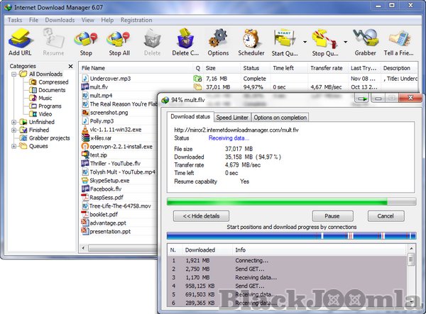Simple graphic user interface makes IDM user friendly and easy to use.Internet Download Manager has a smart download logic accelerator that features intelligent dynamic file segmentation and safe multipart downloading technology to accelerate your downloads. Unlike other download managers and accelerators Internet Download Manager segments downloaded files dynamically during download process and reuses available connections without additional connect and login stages to achieve best acceleration performance.
