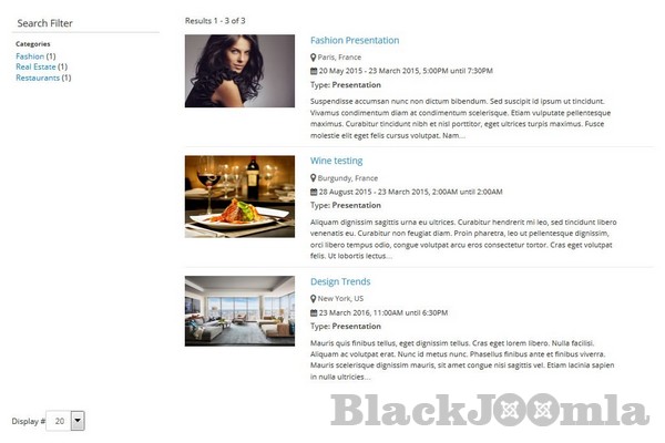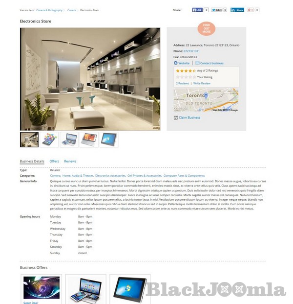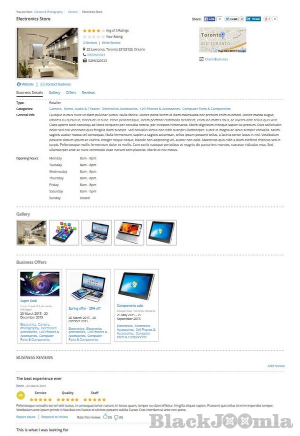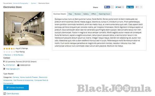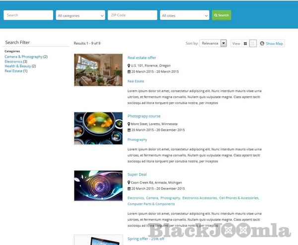 You can check our demo site on http://demo.cmsjunkie.com/j-businessdirectory/