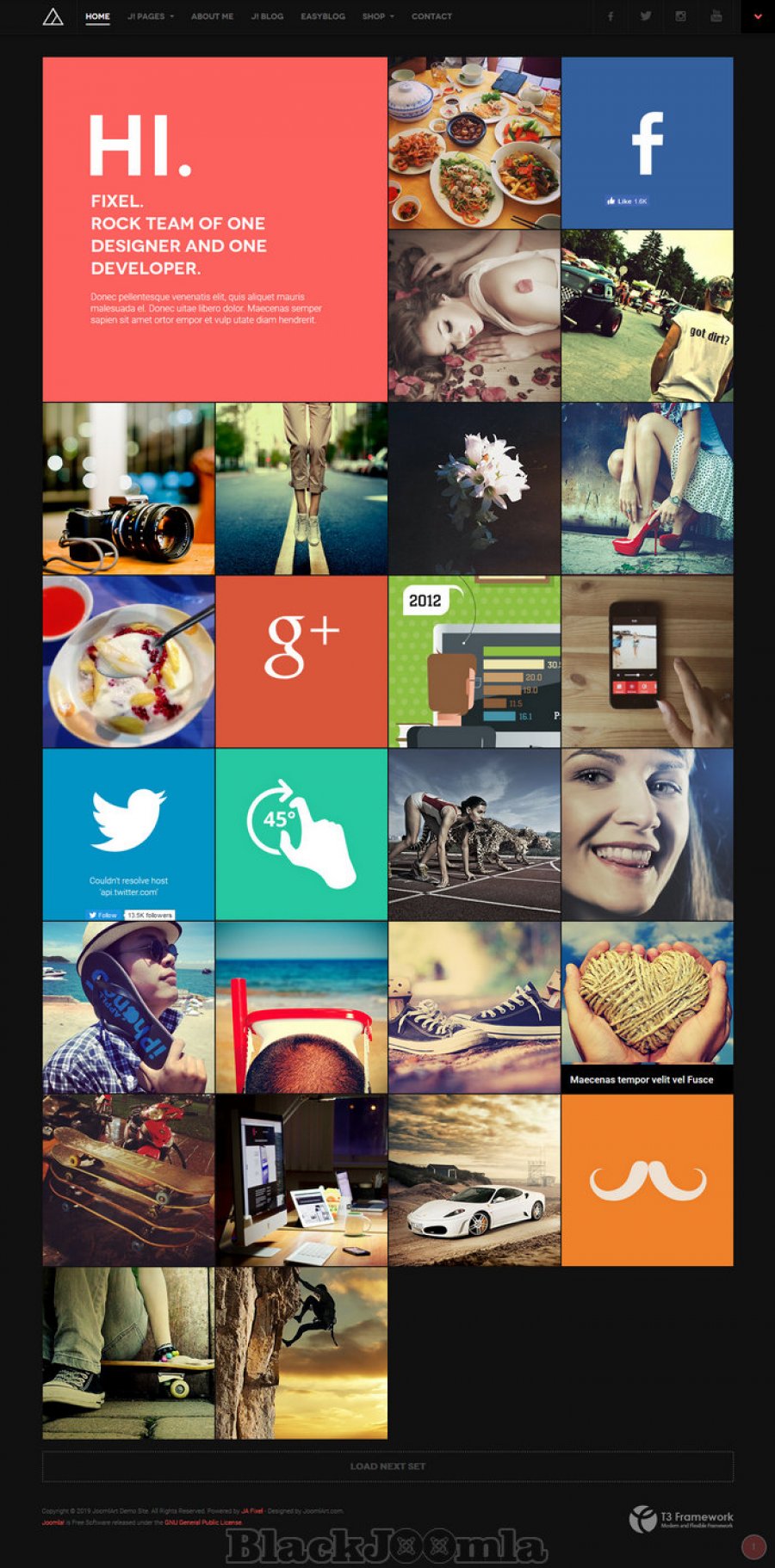 Shines through with its innovative flat design and minimalistic trend: bold colorblocking and bright typo, together with JoomShopping and EasyBlog component, JA Fixel is a complete business eCommerce solution for your Joomla site. Comes in 8 color schemes and 8 bonus pages, supporting 5 different grid styles and various content types. JA Fixel is ready-set-go for your business innovation to go all out.