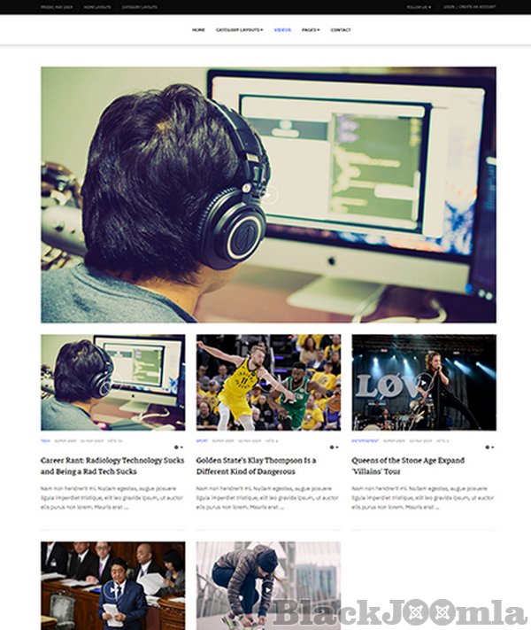 The Joomla template for news and magazine supports Video and Photo Gallery custom articles to help build beautiful video news and photo gallery news.