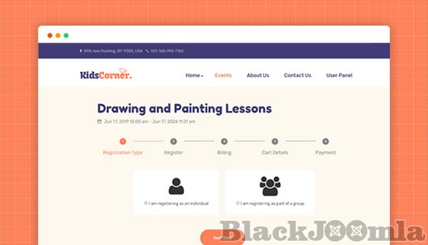 The events booking system in JA Kids Corner is based on DT Register, the most powerful Joomla! events registration/events manager extension provides all needed features to create, display any type of event, manage events registration, get paid from registrants via 40+ popular online payment gateways.