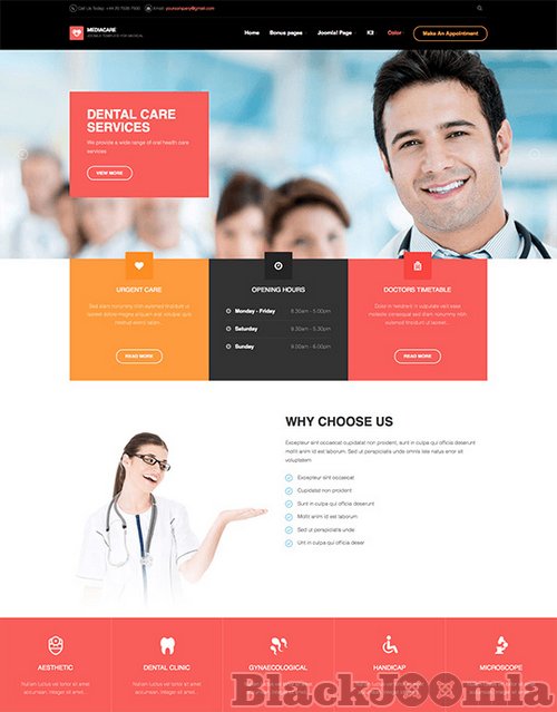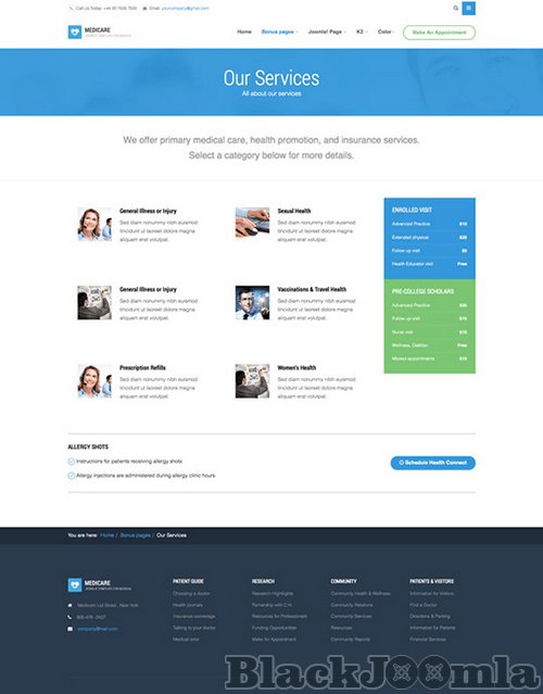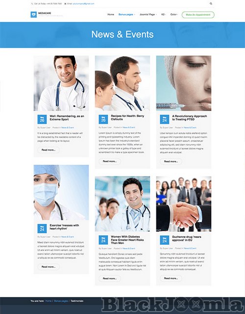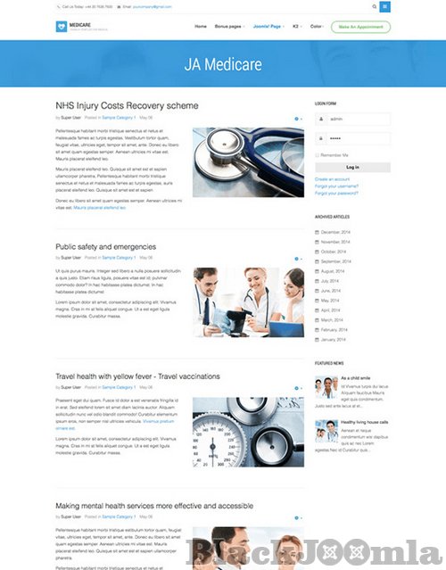 JA Medicare this month comes with beautiful layouts such as Departments, Testimonials, News & Events, 2 Blog styles layouts, Our Services, etc. for FREE.