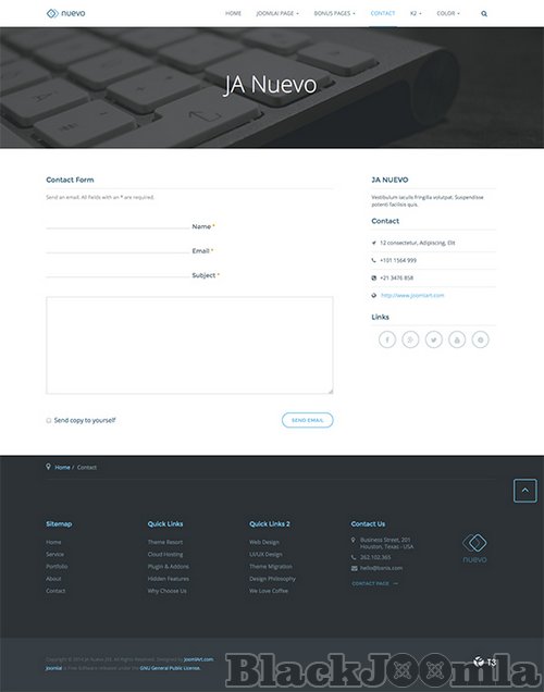 JA Nuevo is modern design template with lot of whitespace and simplicity. It helps enhance the performance of a landing page, improve readability and make a bold first impression. JA Nuevo is flexible with robust tools, you don't have to be CSS ninja, or PHP geek to do the customization.