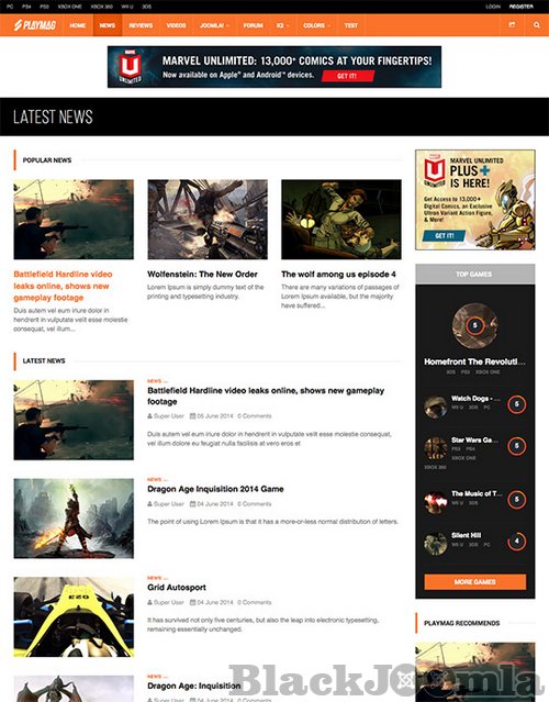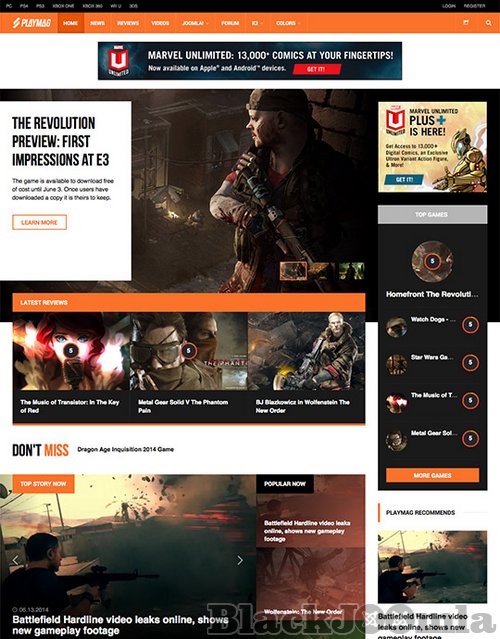 One of the great feature of this Joomla template is the game review page, together with scores and rating system. JA Playmag will surely capture the attention of your readers with dark tone and bold design, stunning headlines and texts, along with the gaming spirit.