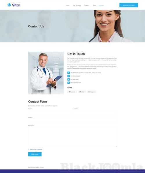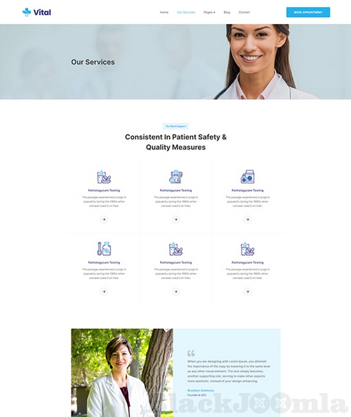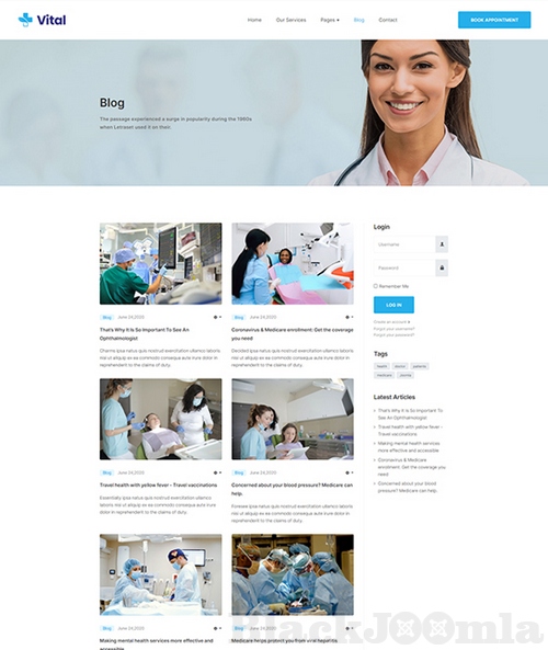 JA Vital a well designed Joomla template for any healthcare businesses with dedicated design to represent your medical services, department facilities, doctors in flexible and modern design.