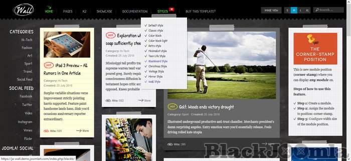 JA Wall does not use T3 framework and given its responsive design it works well and fits on all the web enabled devices and mobile browsers. It comes with six styles viz. Default, Classic, Color Block, Color Block Light, Teenlife and BlackBoard Style. Go on check the demo site for these styles, dont blame us if you fall in love.