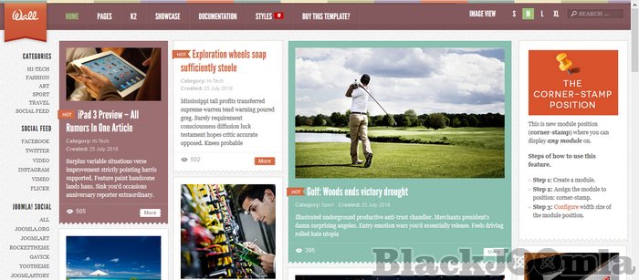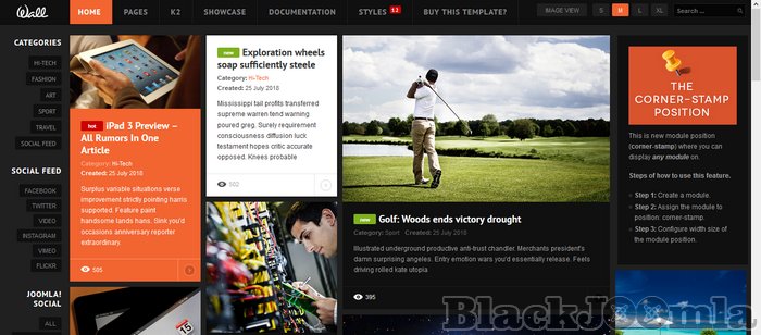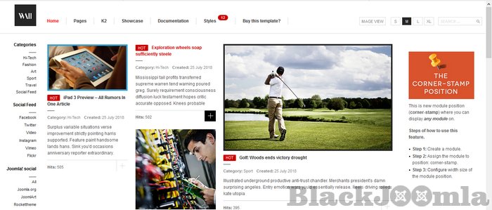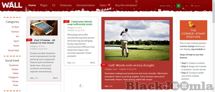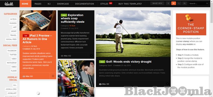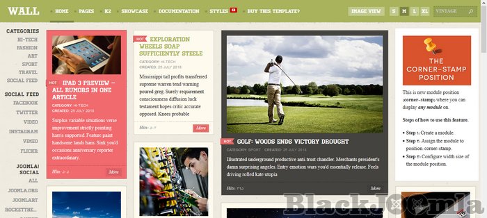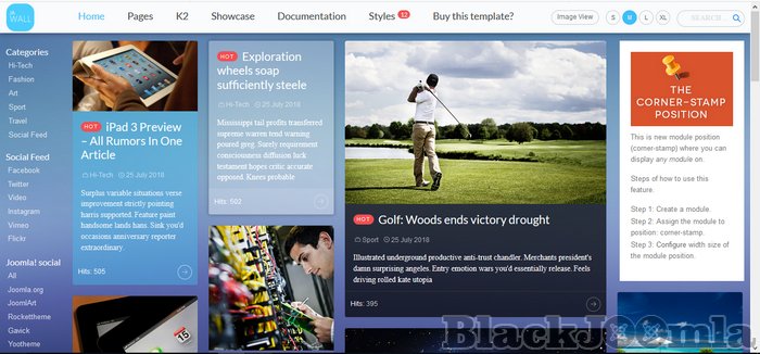 JA Wall allows endless stream of a grid-style content following the undesign approach for your Joomla website