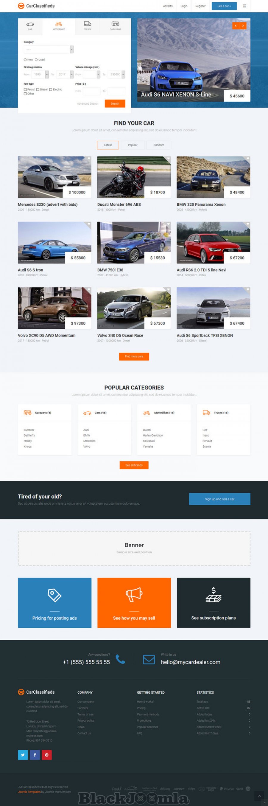 With this beautiful Joomla template, you will create the professional auto classified ads website for new or used cars.