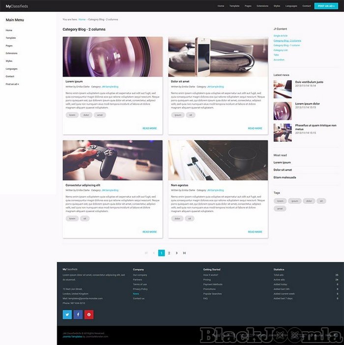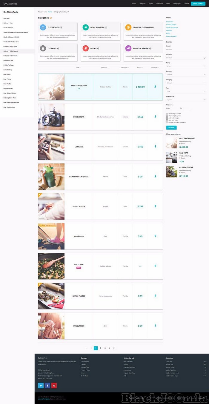 The template is packed with several top notch Joomla classifieds extensions that work together forming a complete platform for a classifieds website, auction portal or companies and products directory. One of them is DJ-Classifieds, the most popular classifieds extension for Joomla that allows you to charge advertisers in many different ways: for posting in paid categories, for promoting ads, for extra images, for extra characters in description and much more!