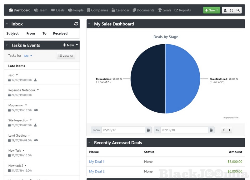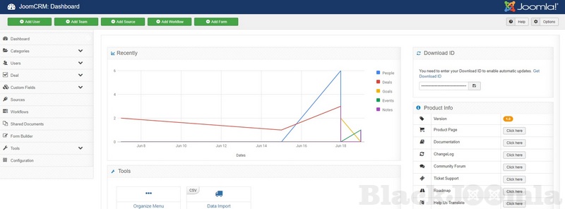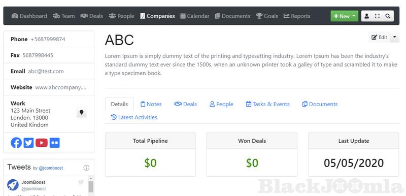- JoomCRM allows managers to be appointed and oversee a team of other users, these managers have access to all information added by their team.