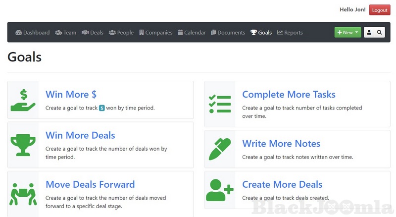 - Create an unlimited number of goals in a variety of types based on the metrics you wish to capture. Create Sales, progress, communication goals and more.
