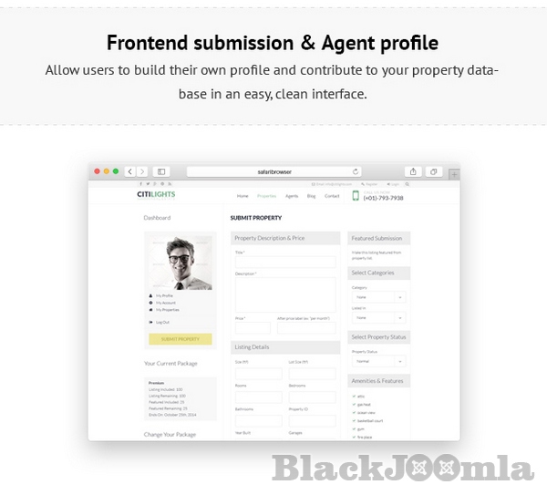 Apart from being able to submit property from frontend, registered users also have full control over their personal page. They are authorized to edit all information such as profile image, social networks, title, description, and contact numbers.