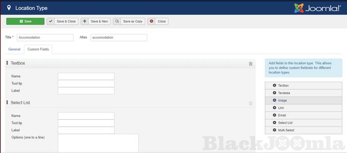 - Define Joomla custom fields for each location type