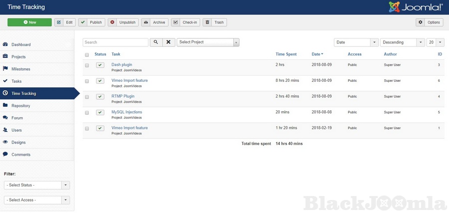 - Automatic linking of milestones, tasks, repository and discussions to the active project