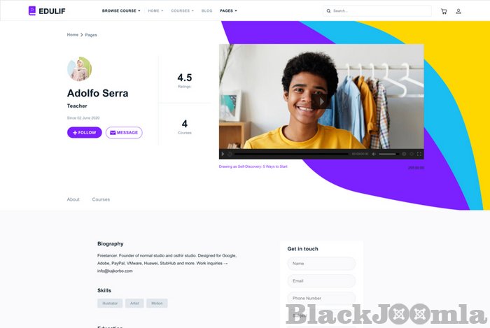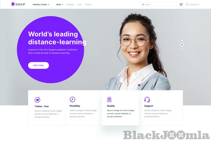 If you want the best education Joomla template, Edulif is exactly that. It has been developed especially for managing and delivering online learning content. The Joomla LMS template can be used to teach languages, drawing, architecting, SEO, programming, using software, school topics, health-care etc. It comes with 3 unique home variations.