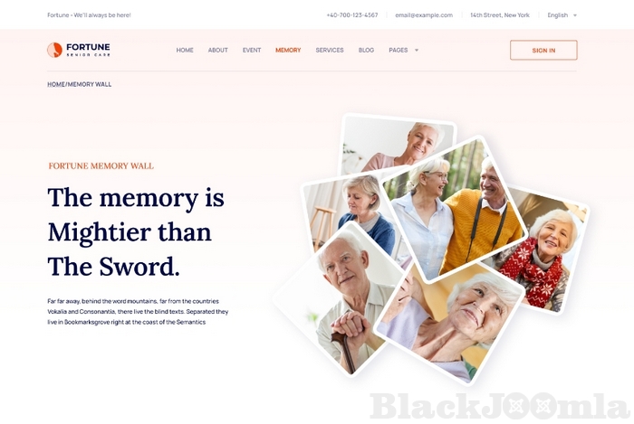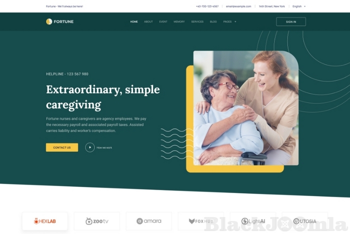 Core features in Fortune, the elderly care Joomla template: