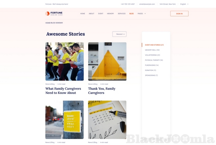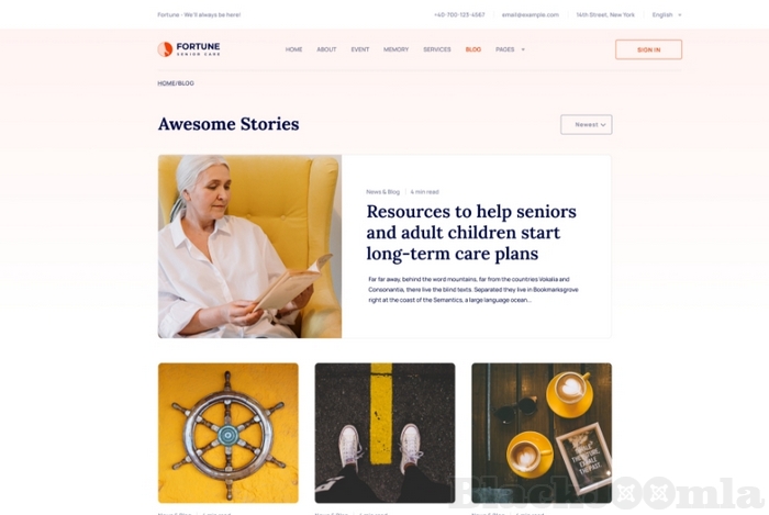 Fortune brings you an exclusively designed blog. You can publish useful elderly care articles, news, notices, announcements, stories or any other things related to elderly people. Reach potential customers easily through engaging content marketing with your blog. Fortune has 2 variations for the blog.