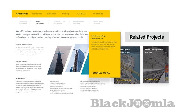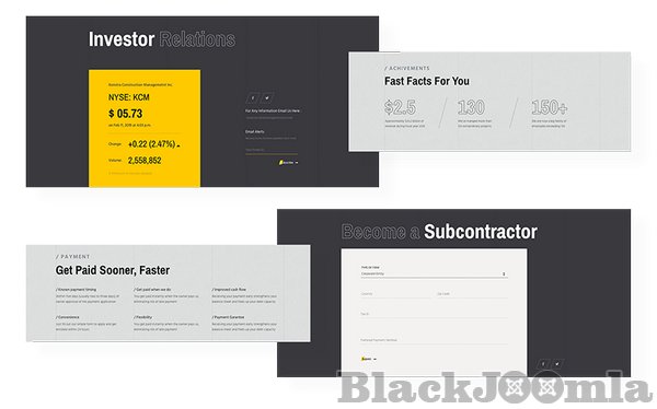 Construction businesses worldwide work with several types of contract mechanisms. Whether your target company supports lump sum, cost plus or T&G method, this Joomla construction template presents them professionally.