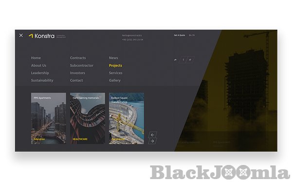 Hero sliders can make a website stand out from the crowd at the first glance- given that, it has to be the good one. Konstra, the building contractor website template has the perfect one.