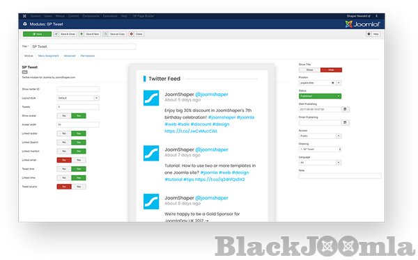 Displaying your Twitter feed is no more a task full of hassles as our SP Tweet module covers that for you. Customize the module to integrate your Twitter feed right on your webpage.