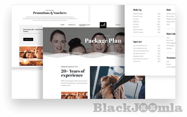 The template offers a high-quality master homepage. As always, with a touch of creativity, you can also apply Salon to other types of sites. It is quick to setup, flexible, easy to customize and personalize. You can effortlessly change basic things like texts, images, icons, layouts, colors, and fonts to enhance your site’s visual appeal. The template QuickStart pack comes with SP Page Builder Pro latest version, so you can construct your own webpages using the page builder’s front-end drag-and-drop live editing system.